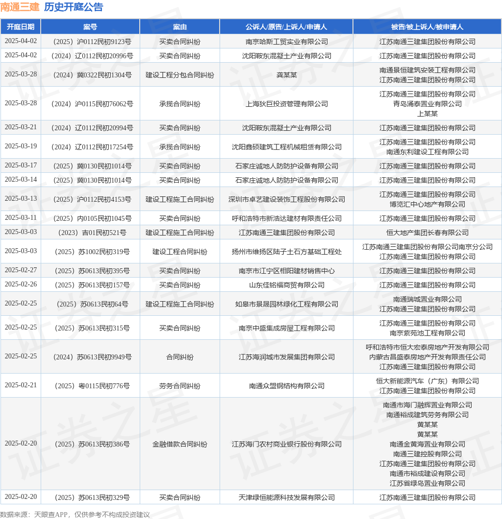 本站消息,根据天眼查APP显示,近日公布了一则江苏南通三建集团股份有限公司作为被告/被上诉人的开庭公告,详细内容如下:
